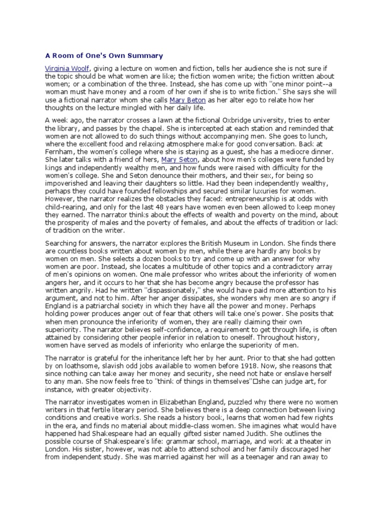 A Room Of One S Own By Virginia Woolf Plot Summary Litcharts